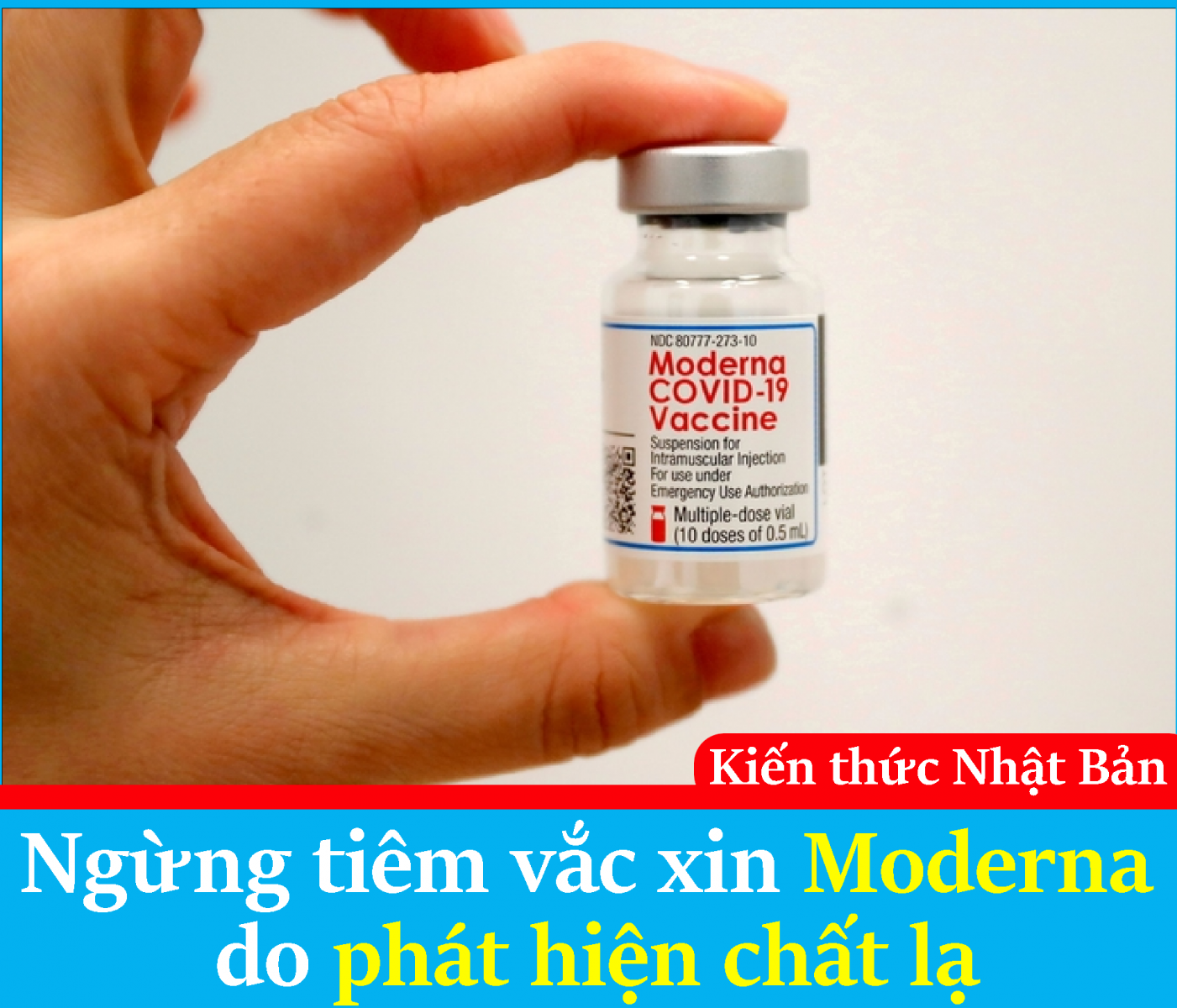 Ngày 26 tháng 8 Bộ Y tế, Lao động và Phúc lợi phát đi thông báo sẽ hoãn tiêm khoảng 1,6 triệu liều vắc xin virus corona do Moderna của Mỹ sản xuất, do bị phát hiện nhiễm chất lạ. Một số có thể đã được tiêm chủng, chưa có báo cáo nguy cơ ảnh hưởng đến sức khỏe ở thời điểm hiện tại. Hiện tại bên phía Moderna đang tiến hành kiểm tra chất lạ đó.