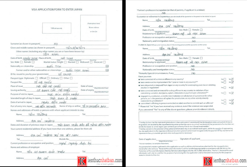 - Tờ khai xin cấp visa, bạn phải điền đầy đủ thông tin và không được để trống bất cứ mục nào (Bạn có thể tải xuống tại link: http://www.vn.emb-japan.go.jp/document/pdf/visa1.pdf).